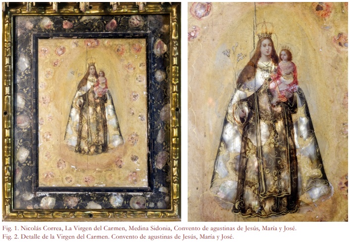 Antonio Romero Dorado, Francisco Montes González.- Resumen: Con este trabajo se contribuye al catálogo del pintor mexicano Nicolás Correa, con la publicación de un nuevo enconchado de su mano firmado, que representa la Virgen del Carmen y que se conserva en el Convento de Jesús, María y José, de Medina Sidonia.