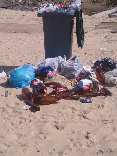 Estado de la playa ayer por la mañana en el aliviadero del Salto del grillo