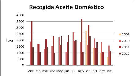 El año pasado se recogieron en total 25.535 litros, siendo el año que más cantidad de aceite se ha recogido con diferencia (ver gráfica). La delegación de Medio Ambiente y Playas, tiene entre sus objetivos la mejora de la gestión de los residuos del municipio, y entre ellos cuenta el aceite que se produce en los hogares. Por ello es fundamental que todos colaboremos separando en nuestros hogares el aceite que no vayamos a consumir, depositándolo en recipientes de plástico para luego, debidamente cerrados e introducirlos en los contenedores ubicados por la localidad.