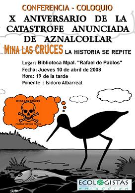 Imagen activaX aniversario de Aznalcóllar.Conferencia-coloquio.Jueves 10 de abril de 2008 a cargo de Isidoro Albarreal, Coordinador  provincial de Ecologistas en Acción de SevillaX Aniversario de la Catástrofe anunciada de Aznalcóllar. Minas de las Cruces, la historiam se repite.