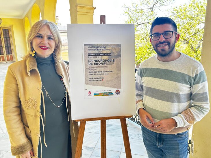 El delegado municipal de Cultura, Narciso Vital, y la presidenta de la Asociación Cultural ‘Amigos de la Radio’ de Sanlúcar, Fabiola Vega, han presentado hoy en el Palacio Municipal el cartel anunciador de la conferencia titulada ‘La Necrópolis de Ebora’, que correrá a cargo de Daniel Jesús Martín-Arroyo, profesor de la […]