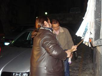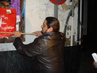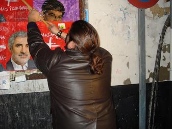Pegada de carteles en la noche electoral