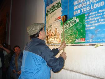 El PSOE y Coalición Andalucista comenzaron la pegada de carteles a las 00.00 horas de este viernes en la calle San Juan, mientras que a las 00.30 horas lo hicieron los militantes de Izquierda Unida en la Cuesta de la Caridad.