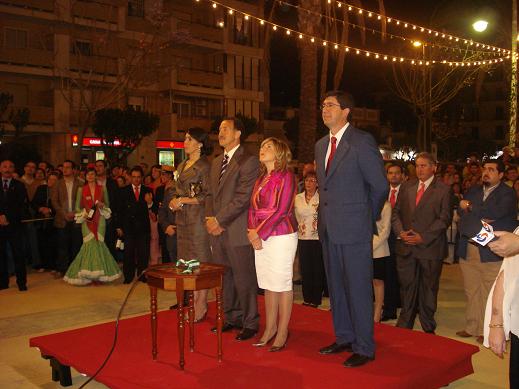 Momentos después del alumbrado, la banda de música Julián Cerdán ha hecho sonar los acordes del himno nacional de España, seguido del himno de Sanlúcar.A continuación la alcaldesa acompañada por los ediles antes mencionado, cortaron la cinta simbólica que apertura esta Feria de la Manzanilla 2008.