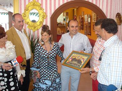 Imagen activaEsta tarde y durante un recorrido por el recinto ferial de más de una hora, la Alcaldesa de Sanlúcar Irene García, de faralaes y acompañada de los delegados de fiestas  Jesús Villegas y cultura Mariuca Cano, también con traje de gitana,  así como del presidente de la Asociación La Caña, ha entregado los premios a las casetas que según el jurado han sido las mejores engalanadas en nuestra feria.