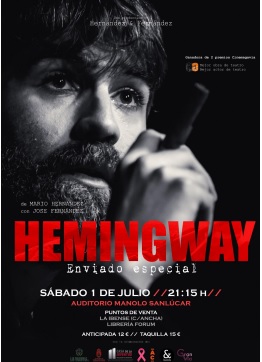 Mario Hernández, tras el éxito de “El pecado mortal de Madame Campoamor”,vuelve a Sanlúcar con este texto, basado en las crónicas sobre la guerra civil del premio Nobel de Literatura Ernest Hemingway.“Desde su habitación 109 del Hotel Florida, situado en la plaza de Callao, Hemingway contó la guerra civil española, […]